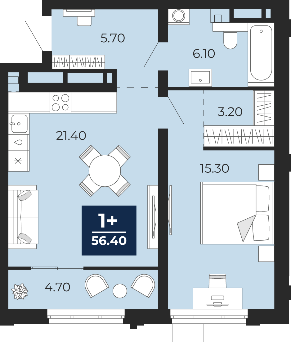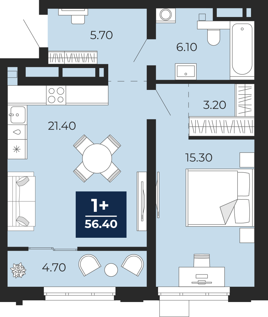 Площадь 56.4 м2