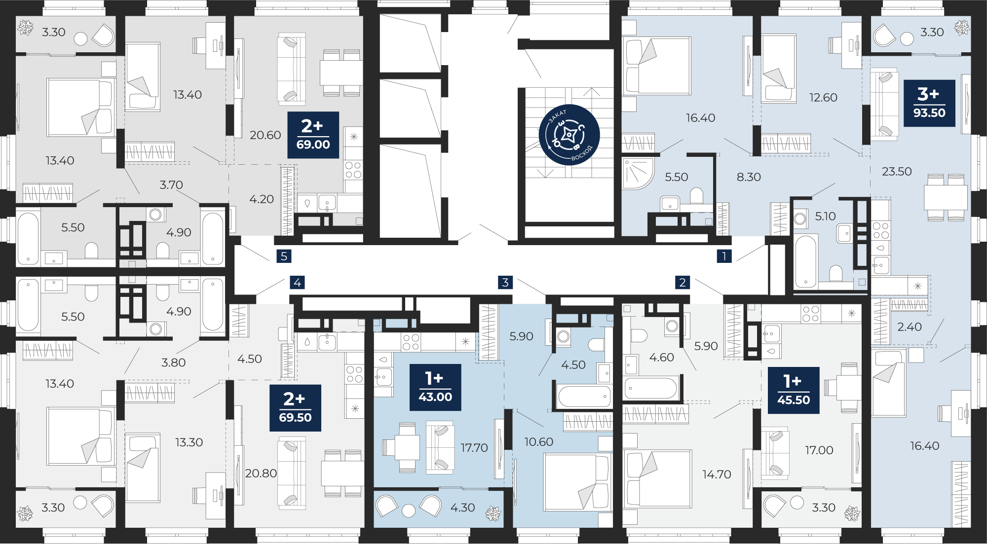 Квартира № 405, 2-комнатная, 69.5 кв. м, 11 этаж