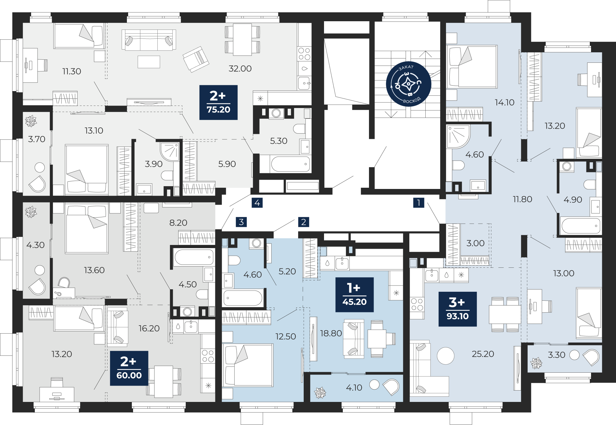 Квартира № 439, 3-комнатная, 93.1 кв. м, 2 этаж