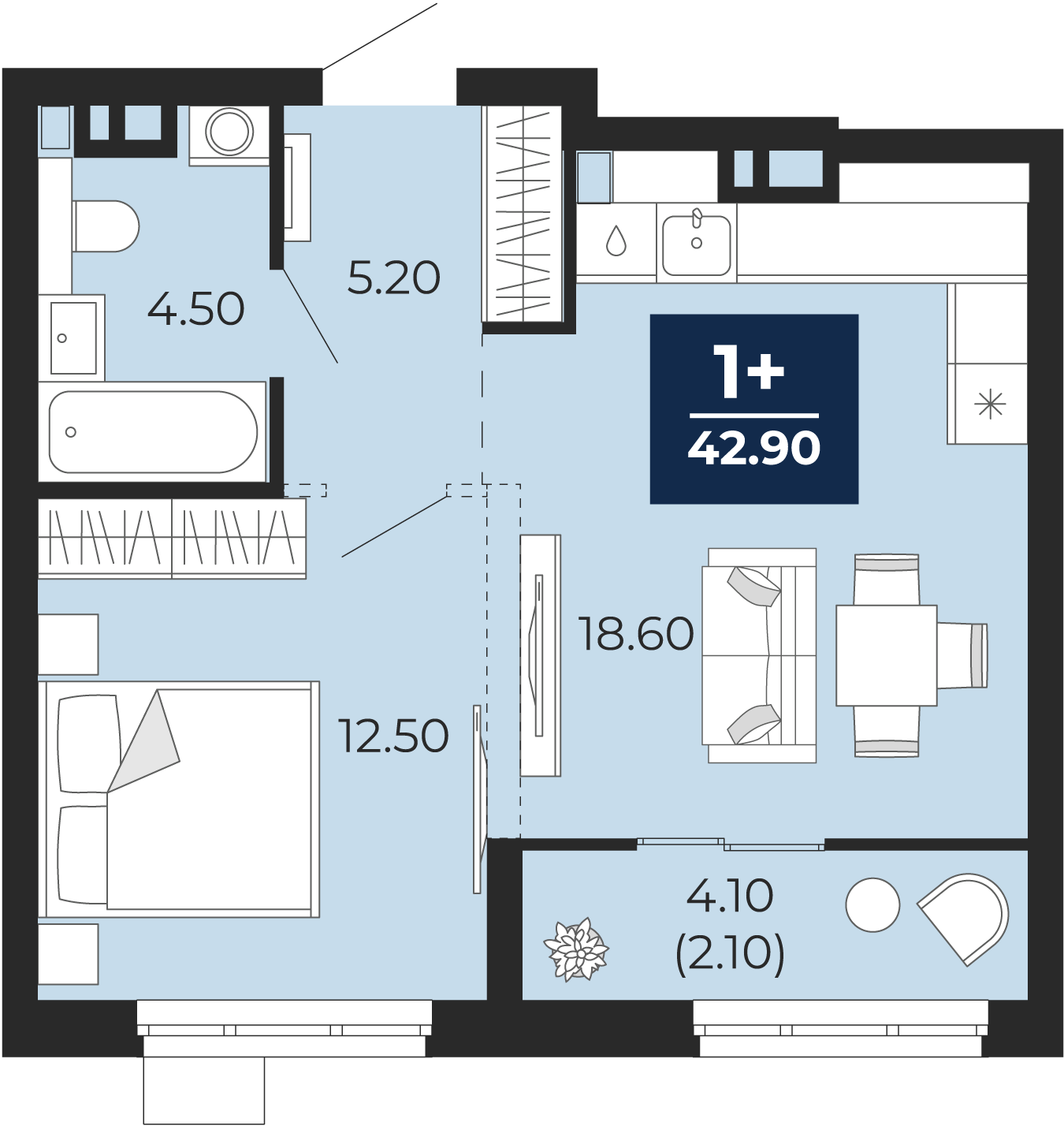Площадь42.9 м2