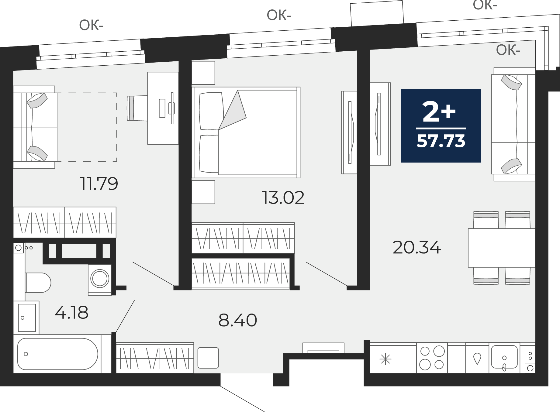 Площадь 57.73 м2