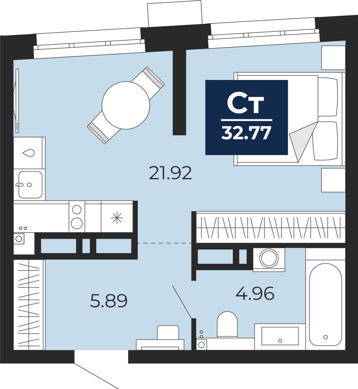 Квартира № 87, Студия, 32.77 кв. м, 12 этаж