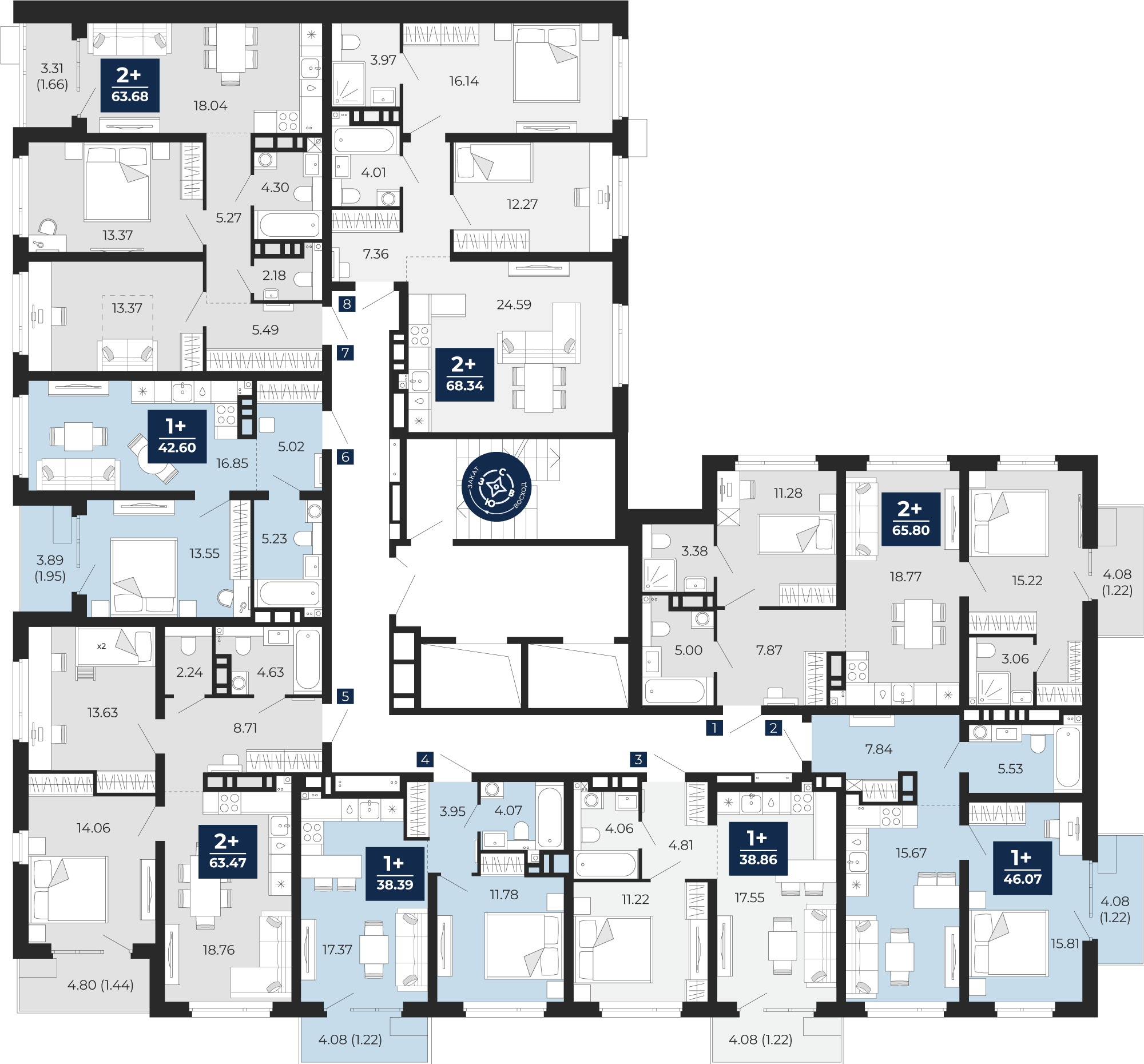 Квартира № 87, 2-комнатная, 65.33 кв. м, 12 этаж