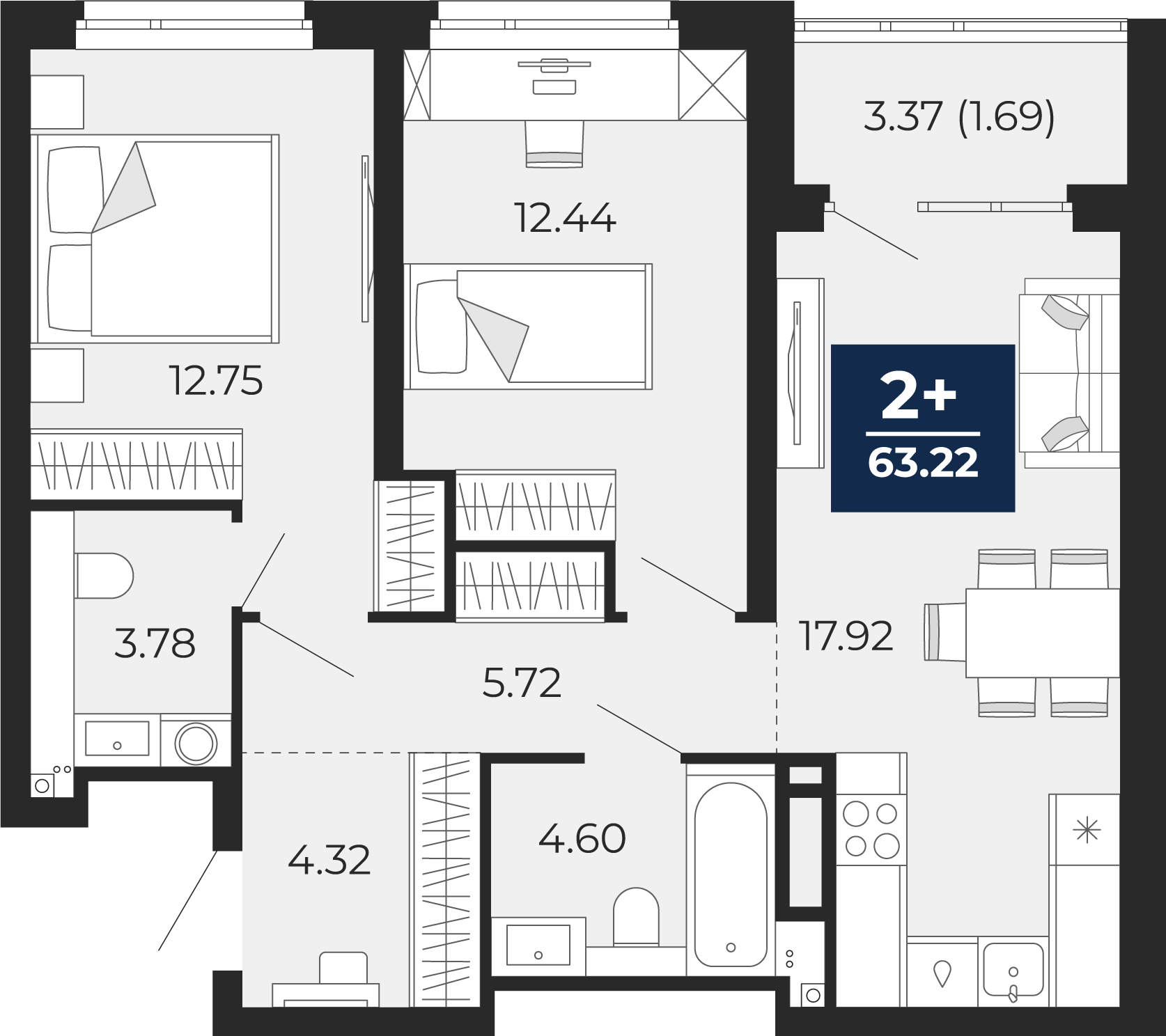 Площадь 63.22 м2