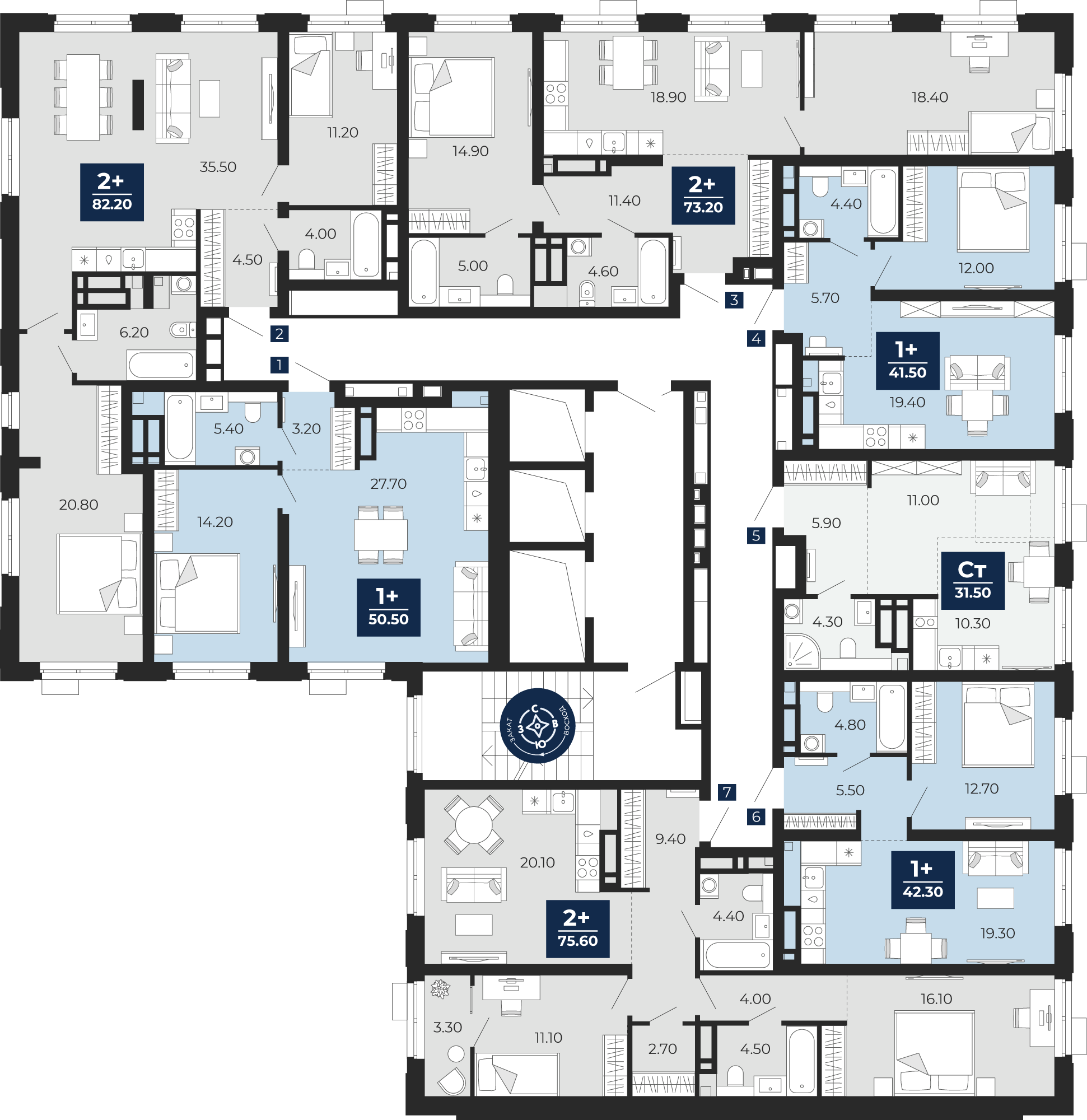 Квартира № 279, 1-комнатная, 42.3 кв. м, 22 этаж