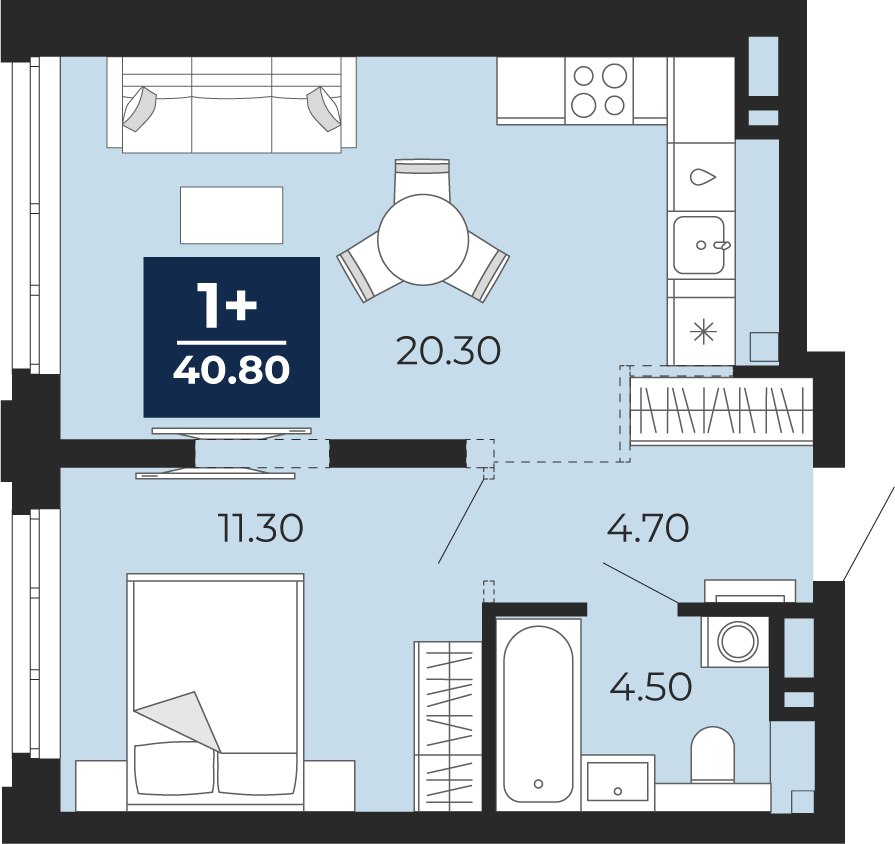 1-комнатная, 40.8 м2