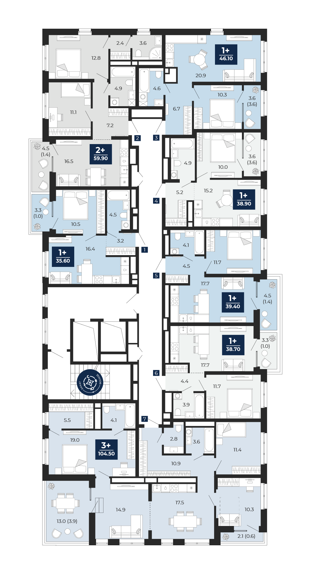1 комнатная квартира Стандарт, площадью: 38,7 кв.м. №453, балконы/лоджии 3,30(Н)