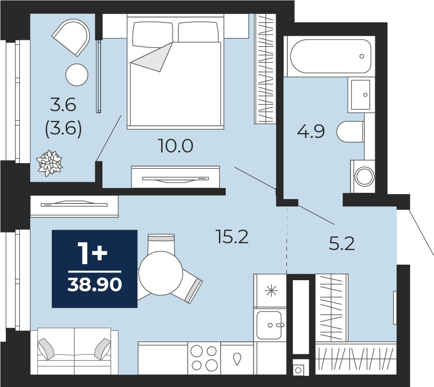 1-комнатная, 38.9 м2