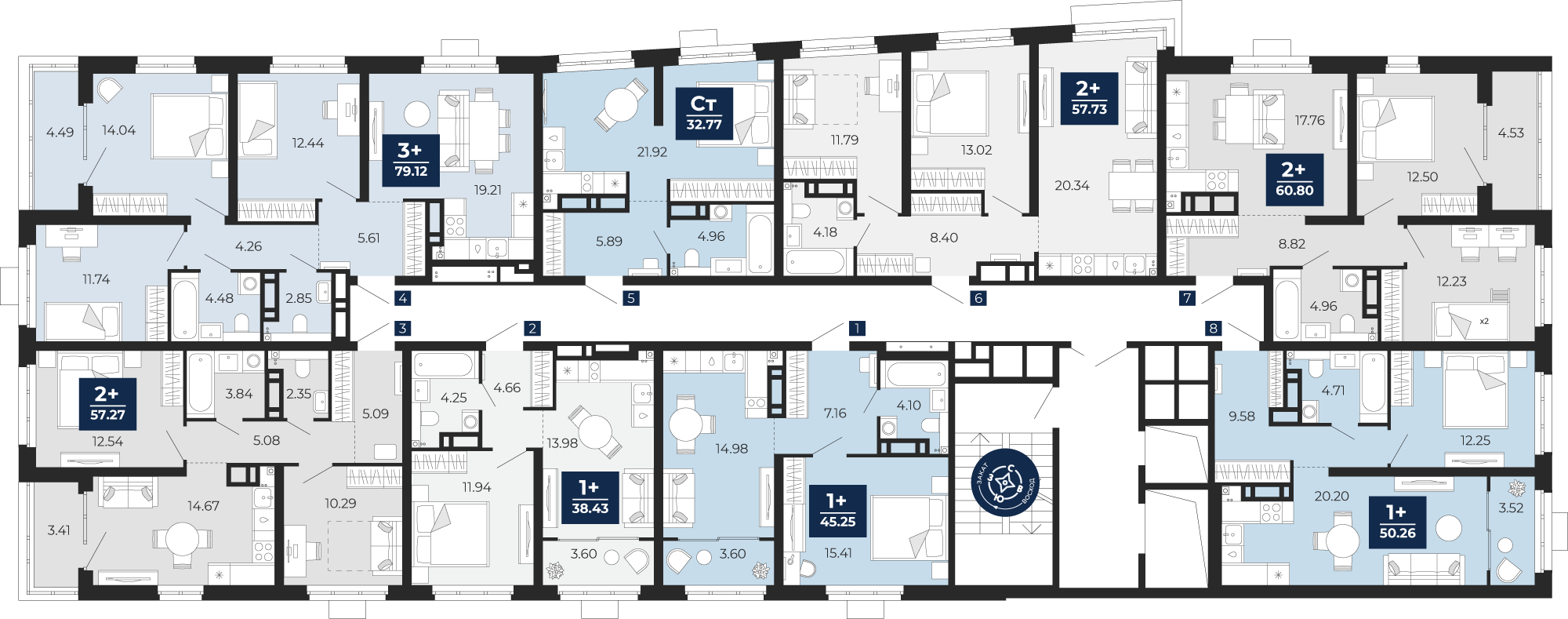 Квартира № 15, Студия, 32.77 кв. м, 3 этаж