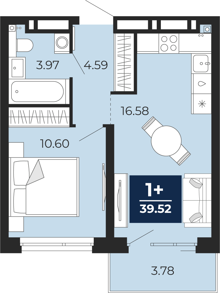 Площадь 39.52 м2