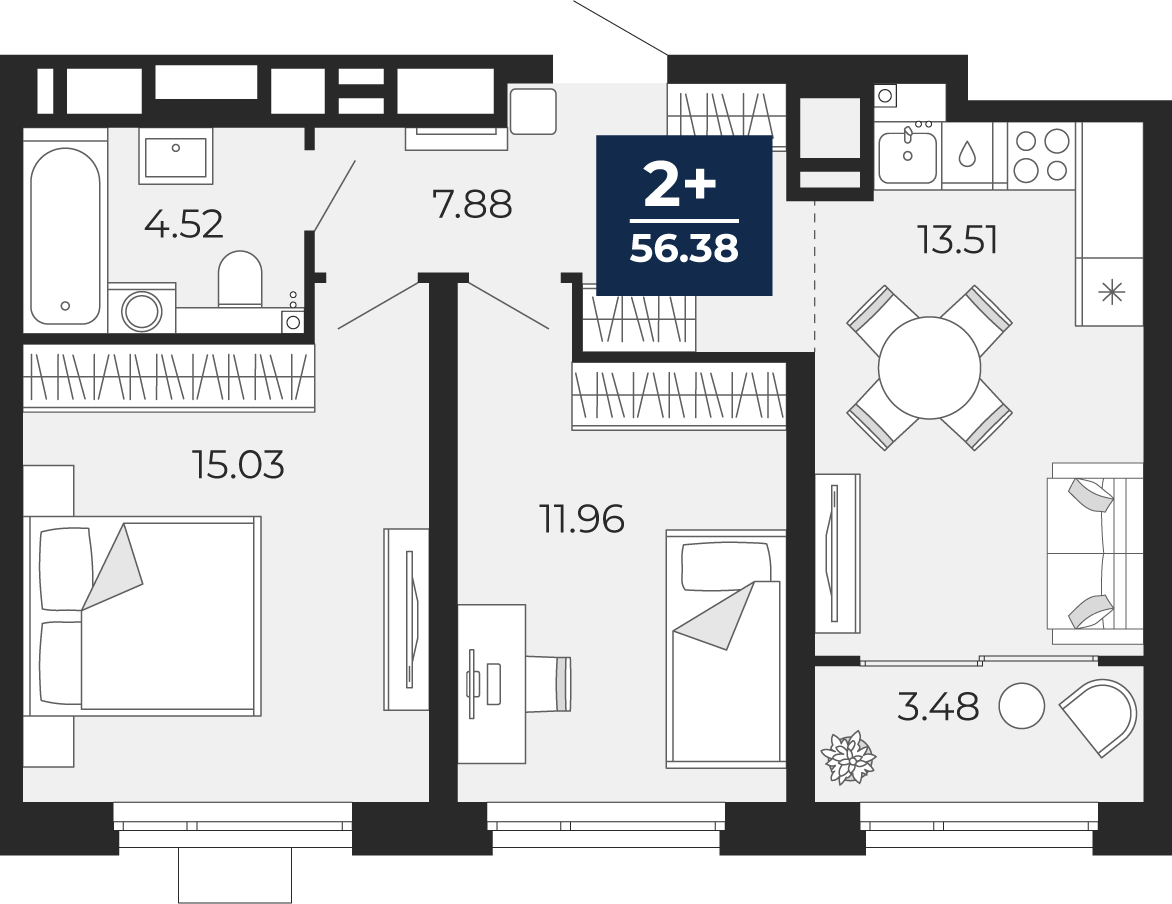 Площадь 56.38 м2