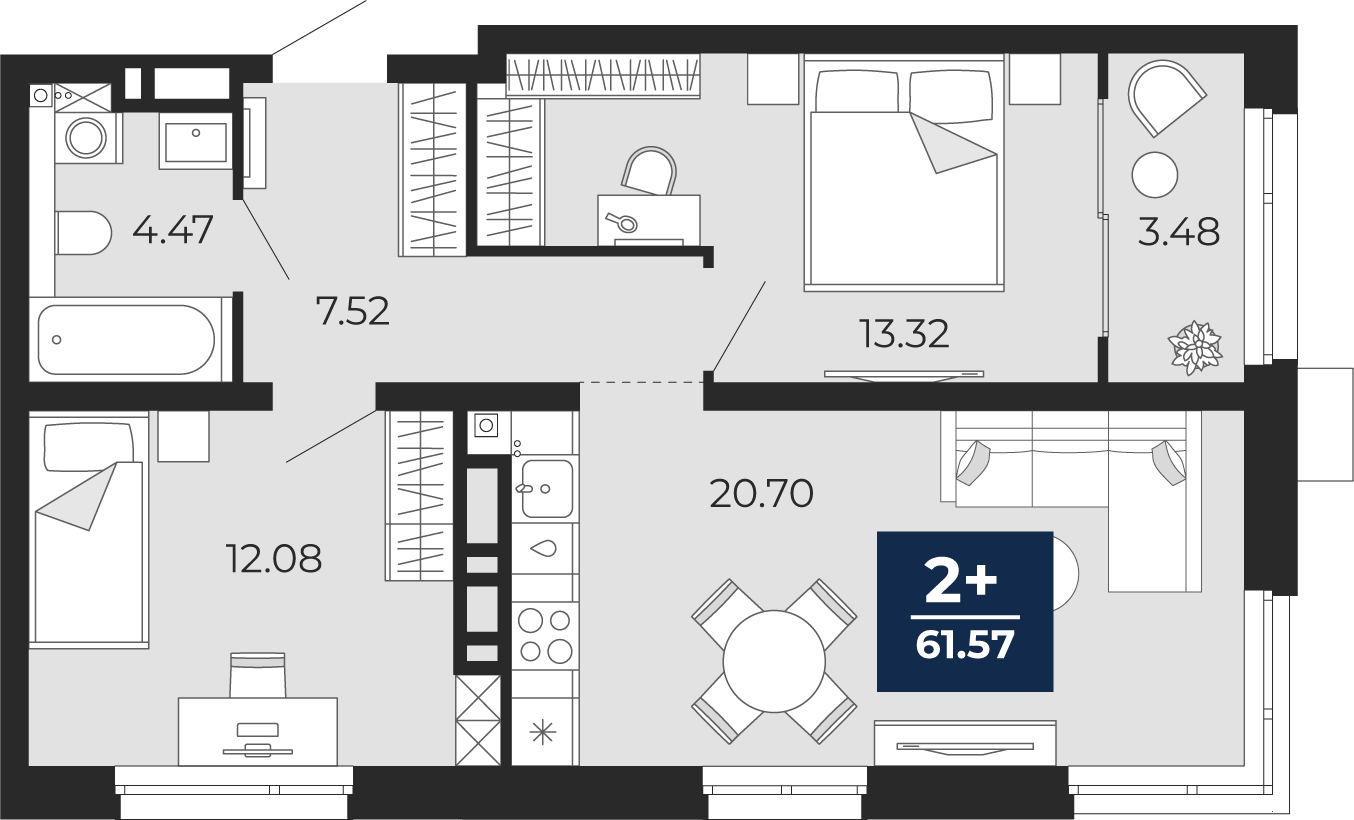 Площадь 61.57 м2