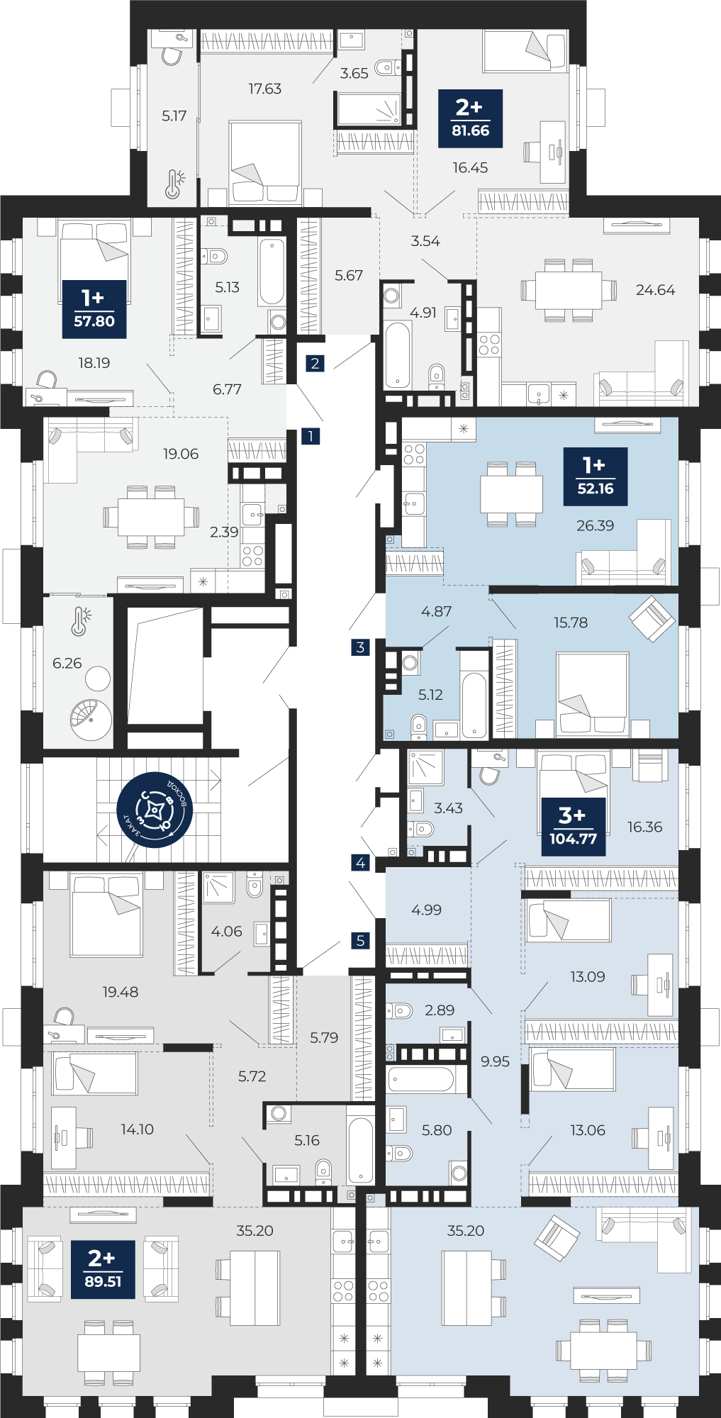 Квартира № 463, 2-комнатная, 81.66 кв. м, 3 этаж