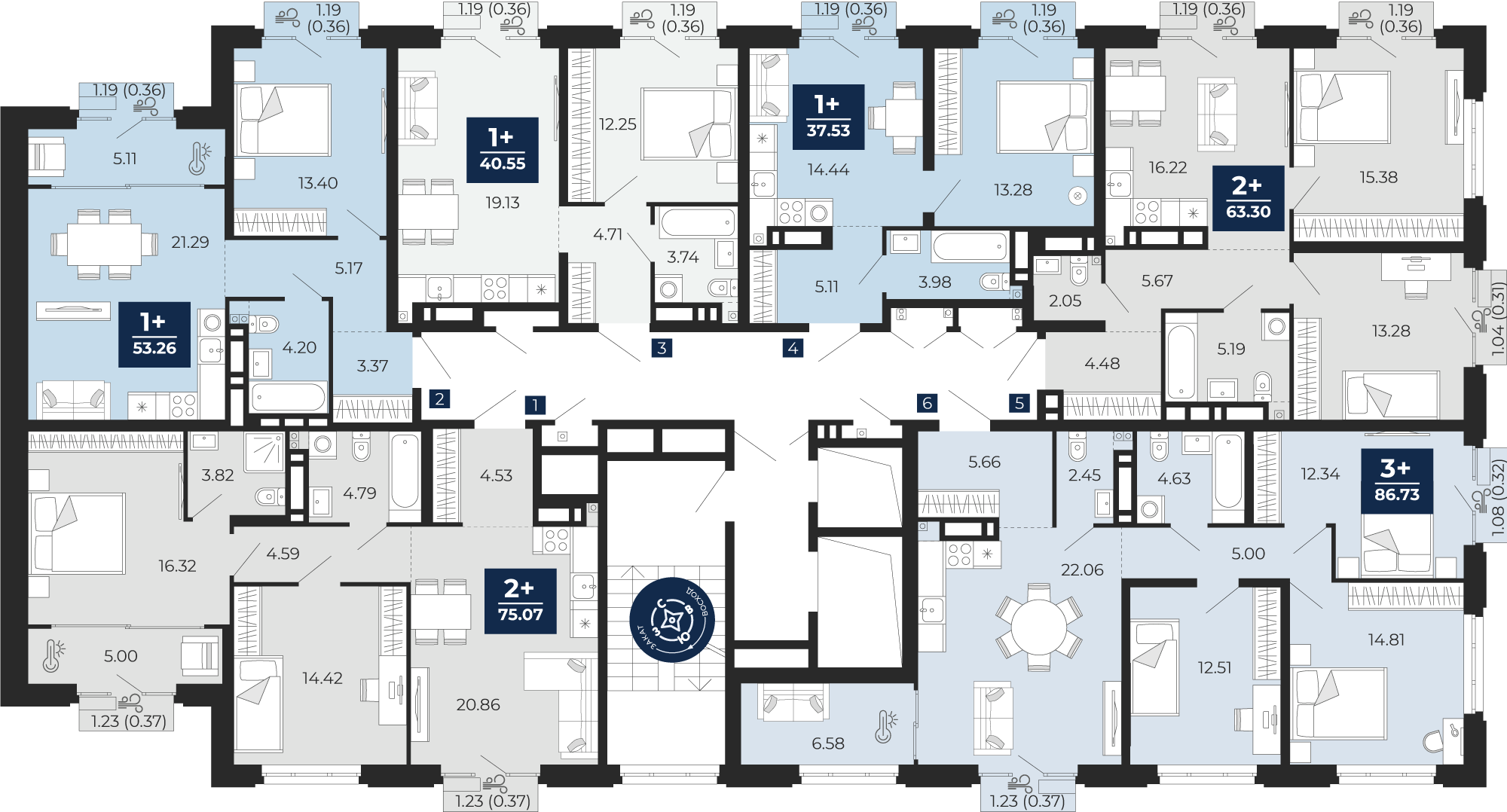 Квартира № 312, 3-комнатная, 86.73 кв. м, 5 этаж
