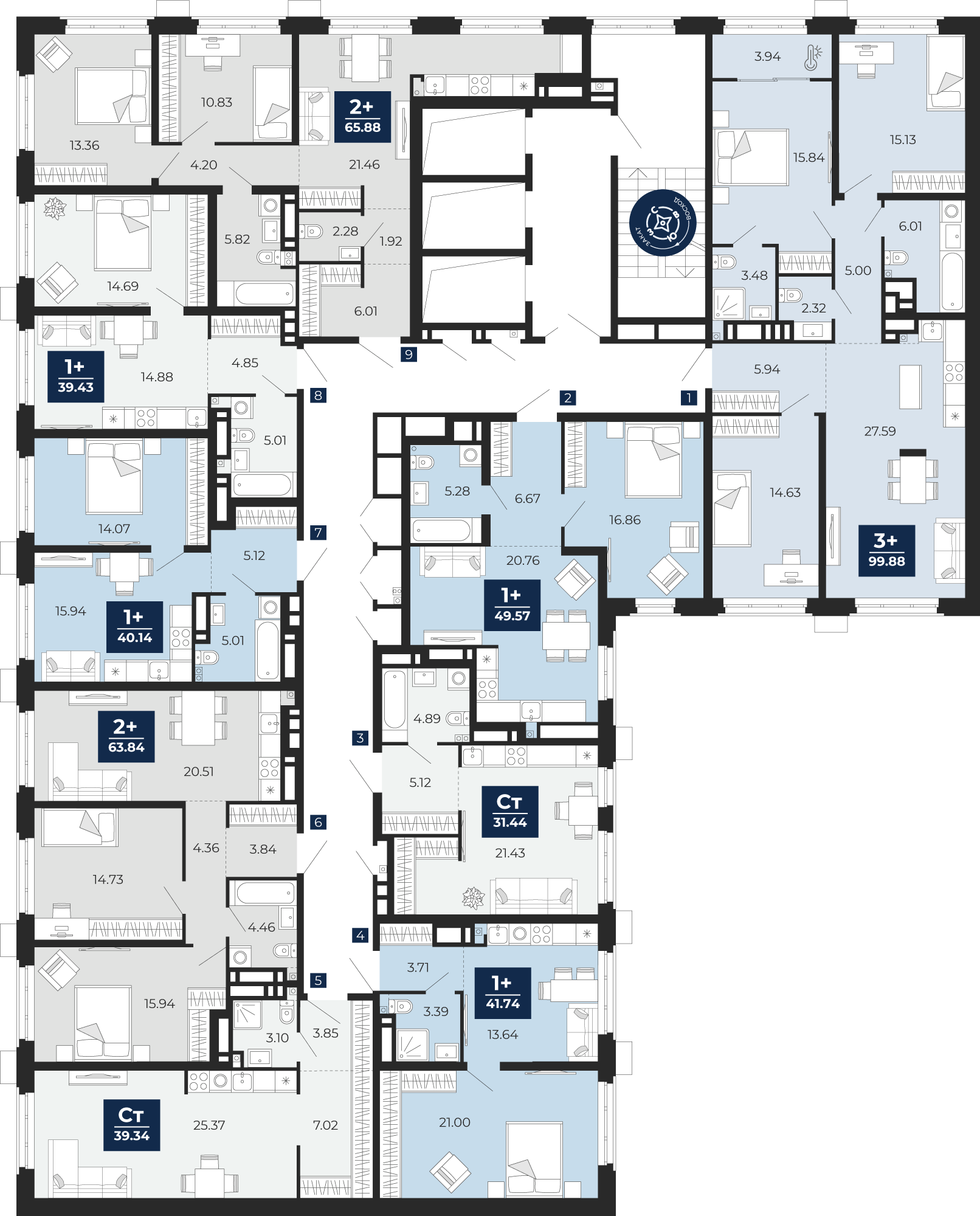 Квартира № 108, 1-комнатная, 40.14 кв. м, 4 этаж