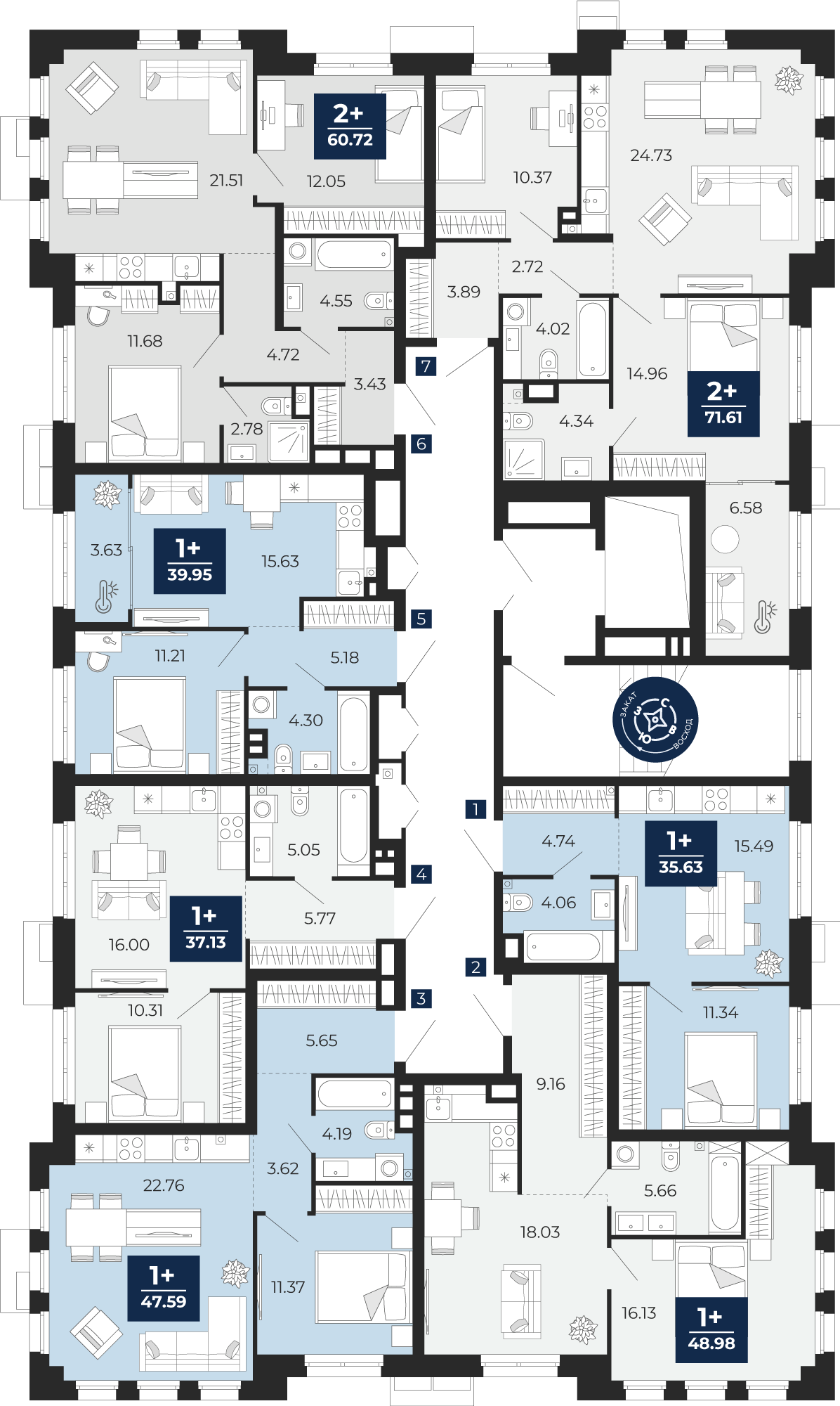 Квартира № 6, 2-комнатная, 60.72 кв. м, 2 этаж