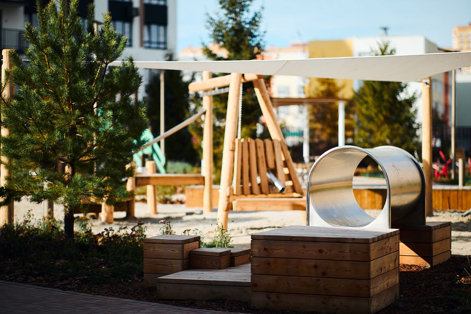 С новой очередью появится площадка для выгула питомцев — большая и уютная. Она наполнена зонами активности собак и местами отдыха хозяев. Озеленение и деревянные детали превратят прогулки в радость, а места хватит, чтобы принять сразу много четвероногих гостей.