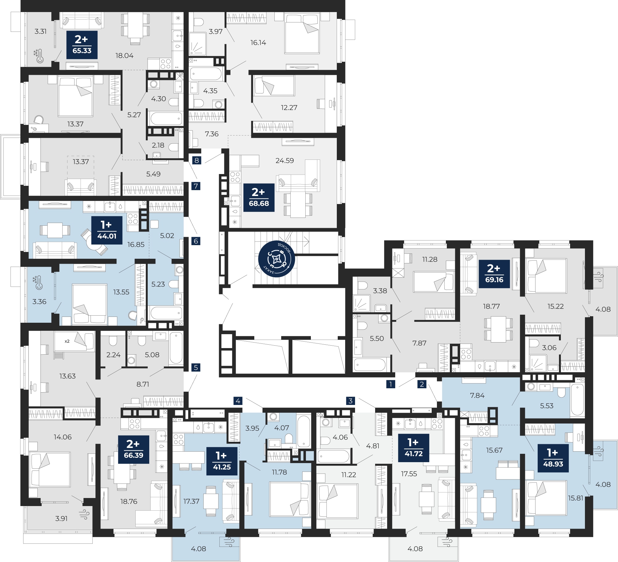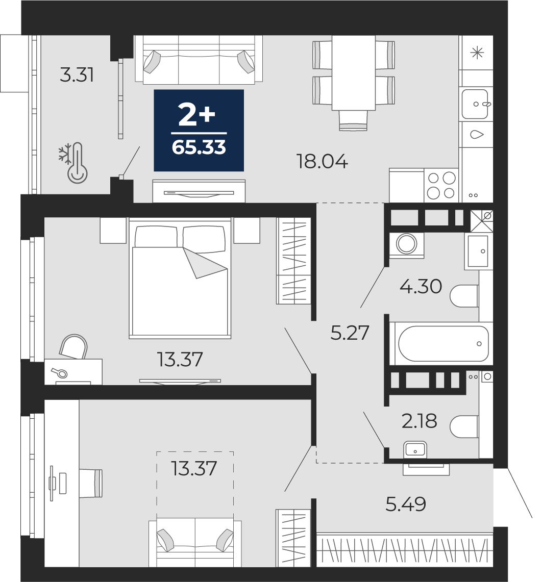 Квартира № 7, 2-комнатная, 63.68 кв. м, 2 этаж