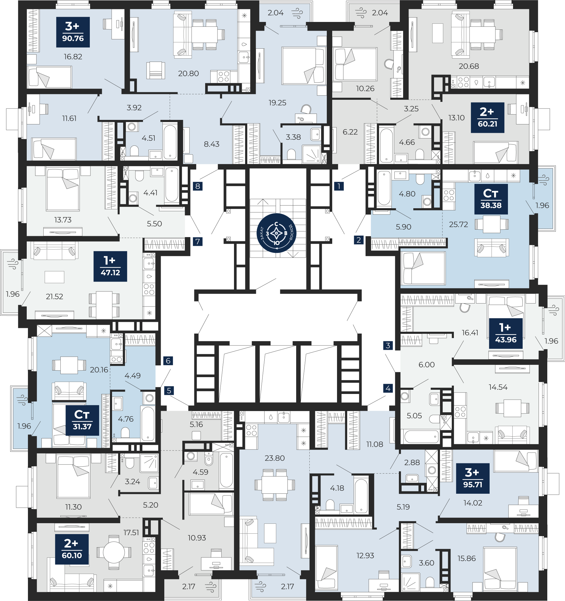 Квартира № 120, 1-комнатная, 30 кв. м, 16 этаж