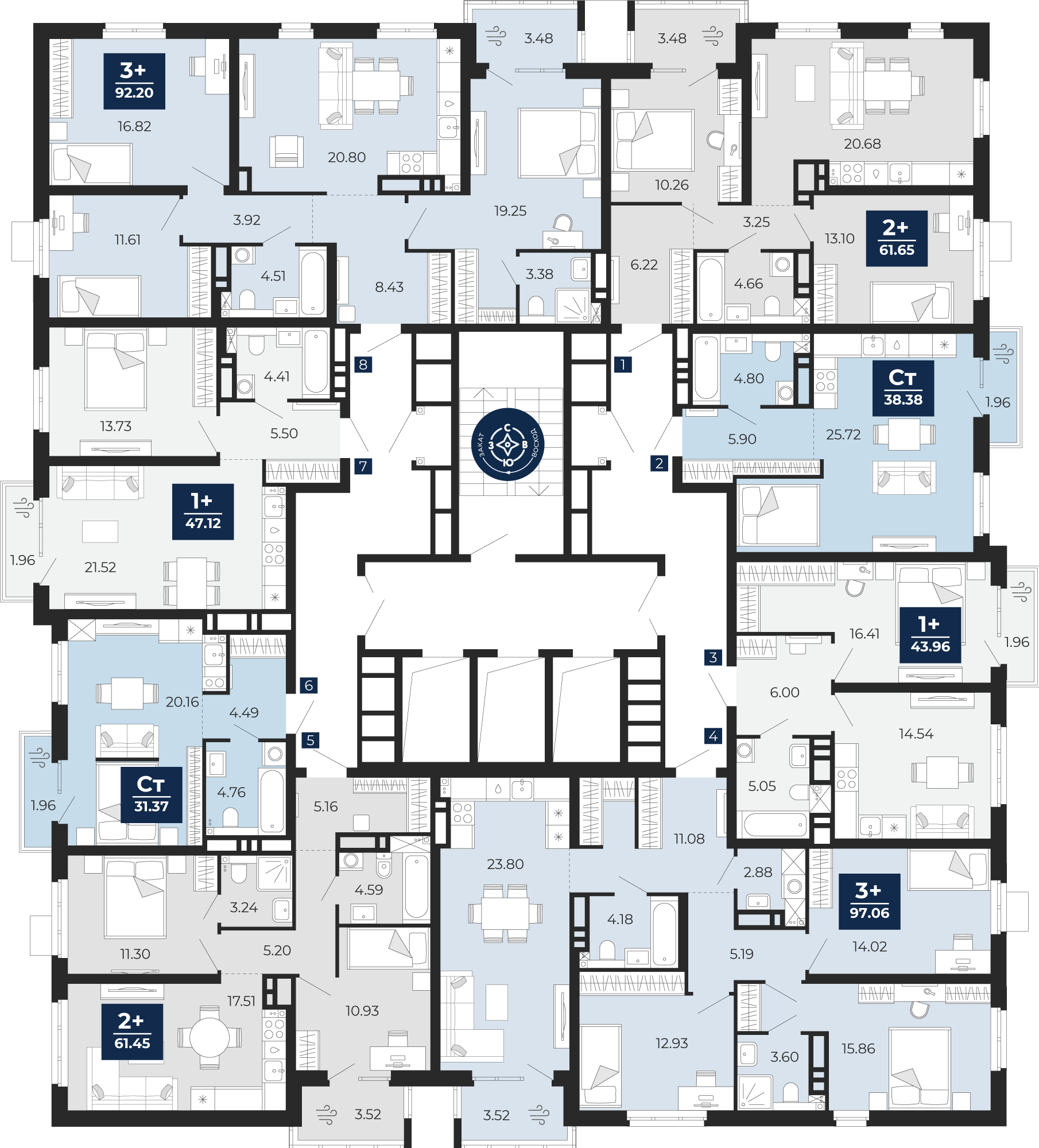 Квартира № 56, 1-комнатная, 30 кв. м, 8 этаж