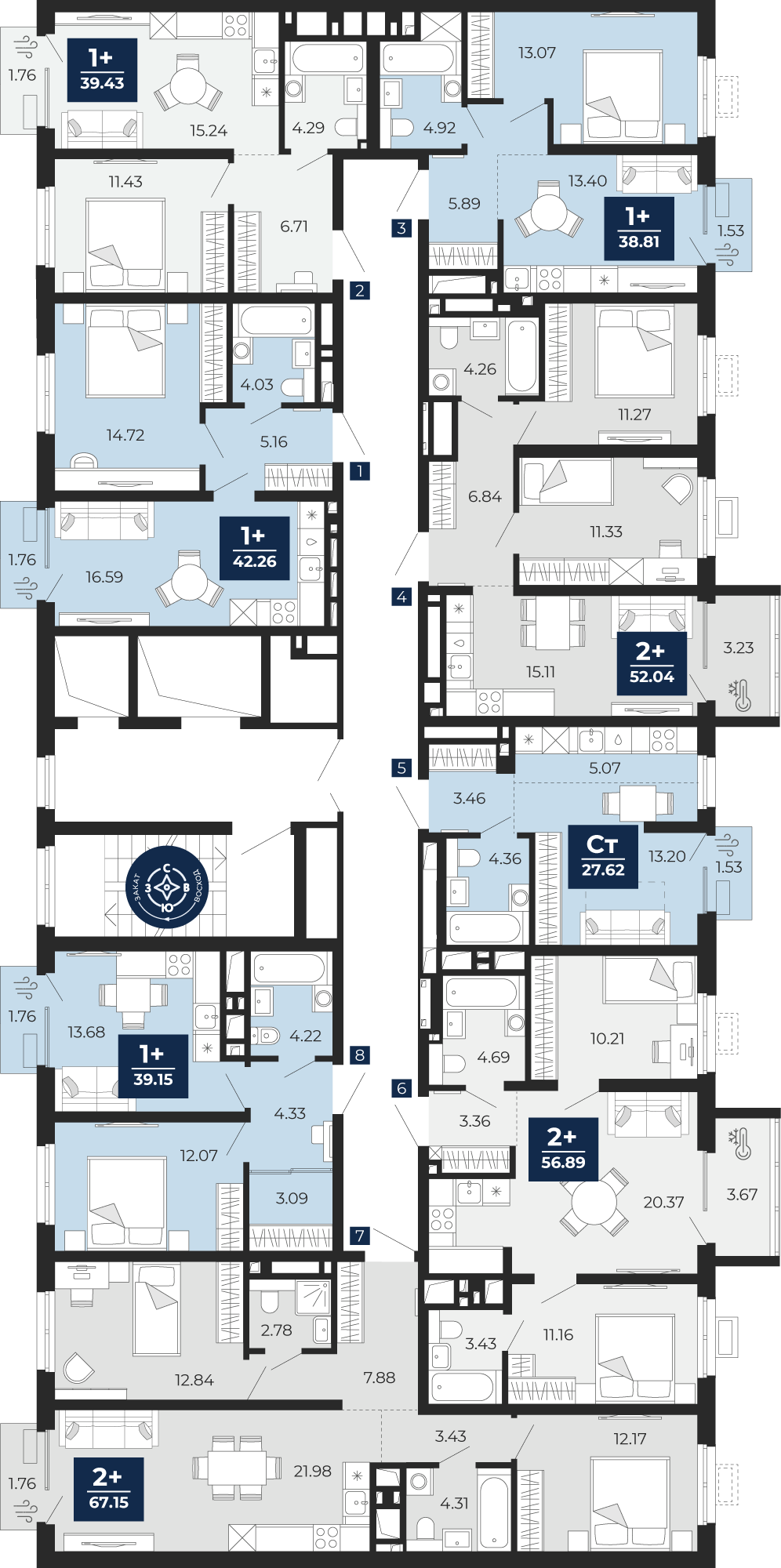 Квартира № 227, Студия, 26.55 кв. м, 10 этаж