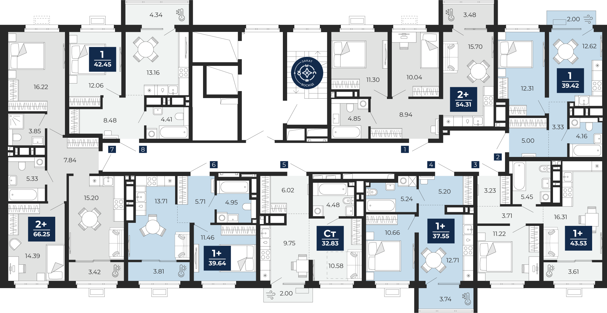 Квартира № 916, Студия, 31.43 кв. м, 6 этаж