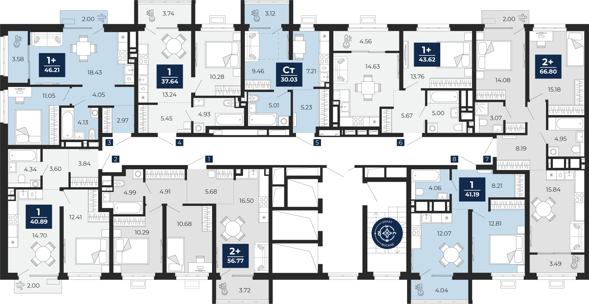 Квартира № 8, Студия, 28.47 кв. м, 2 этаж