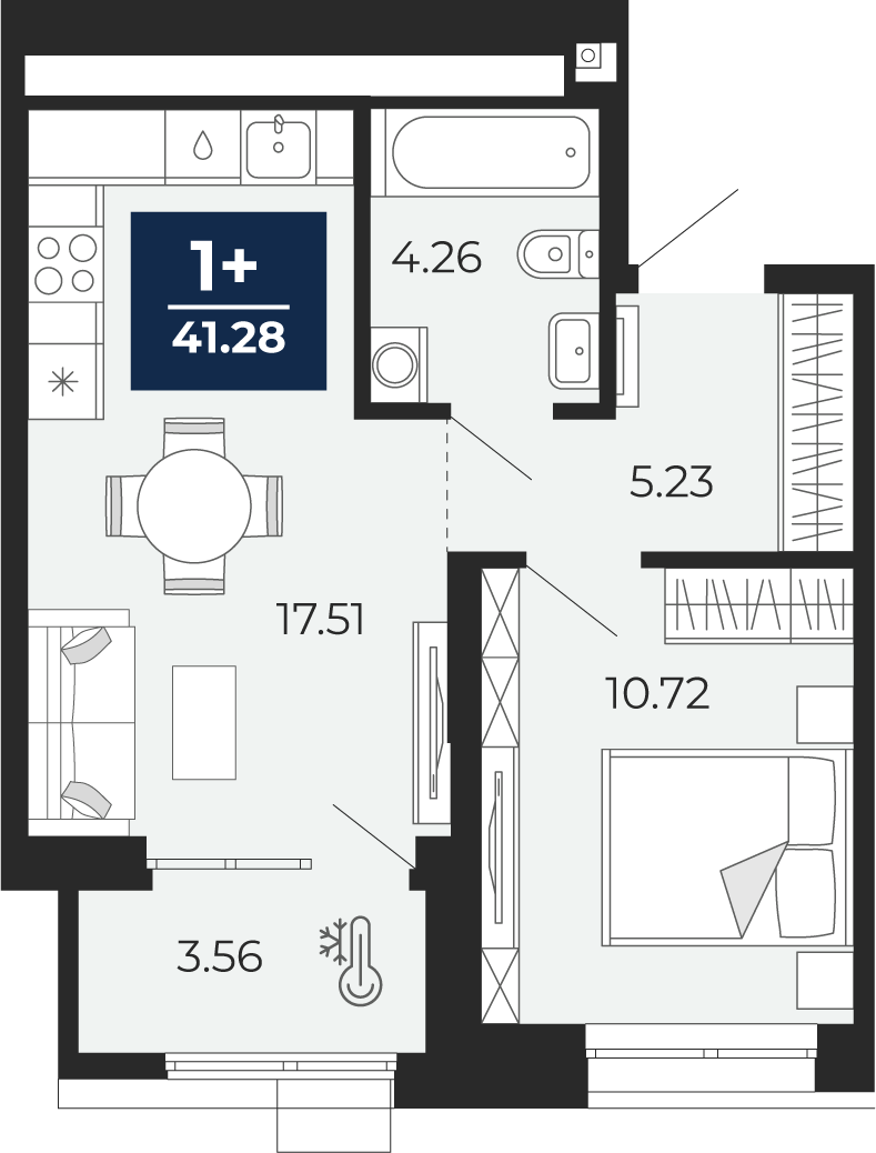 1-комнатная, 41.28 м2
