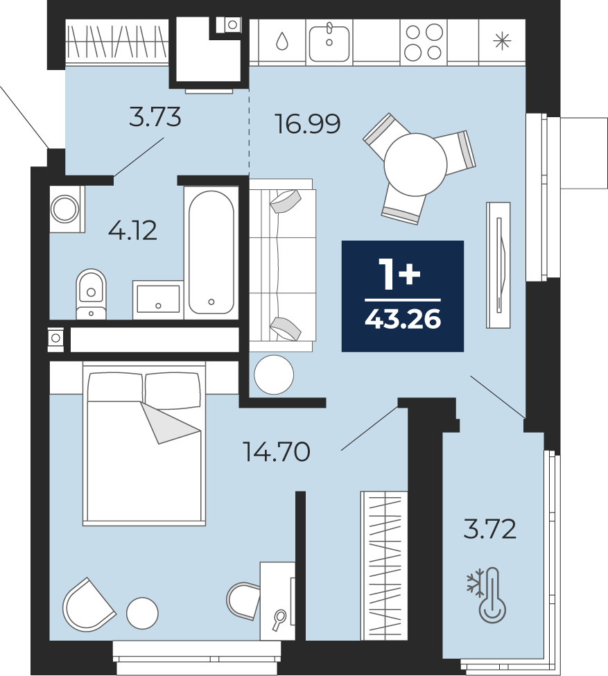Площадь 43.26 м2