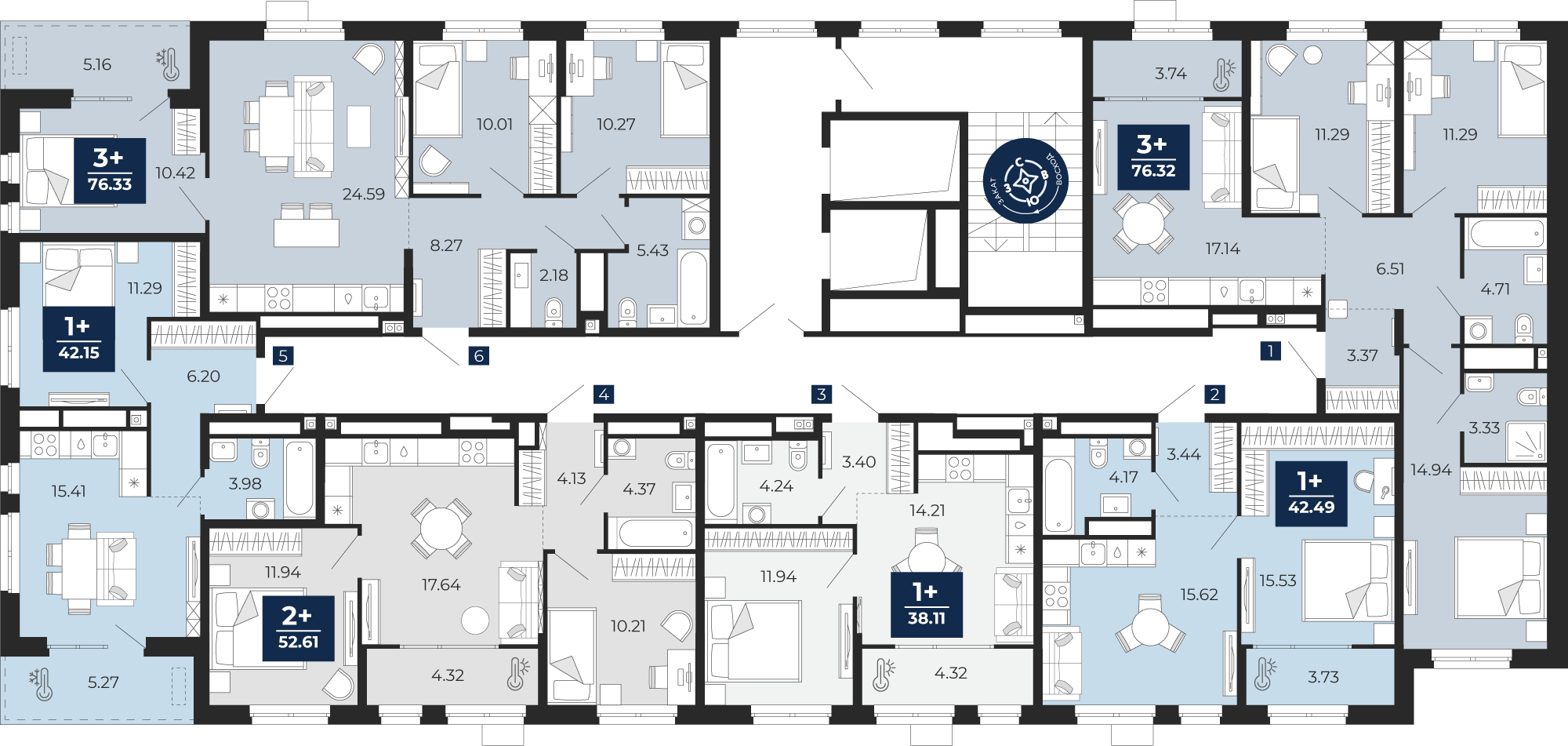 Квартира № 298, 1-комнатная, 38.11 кв. м, 15 этаж