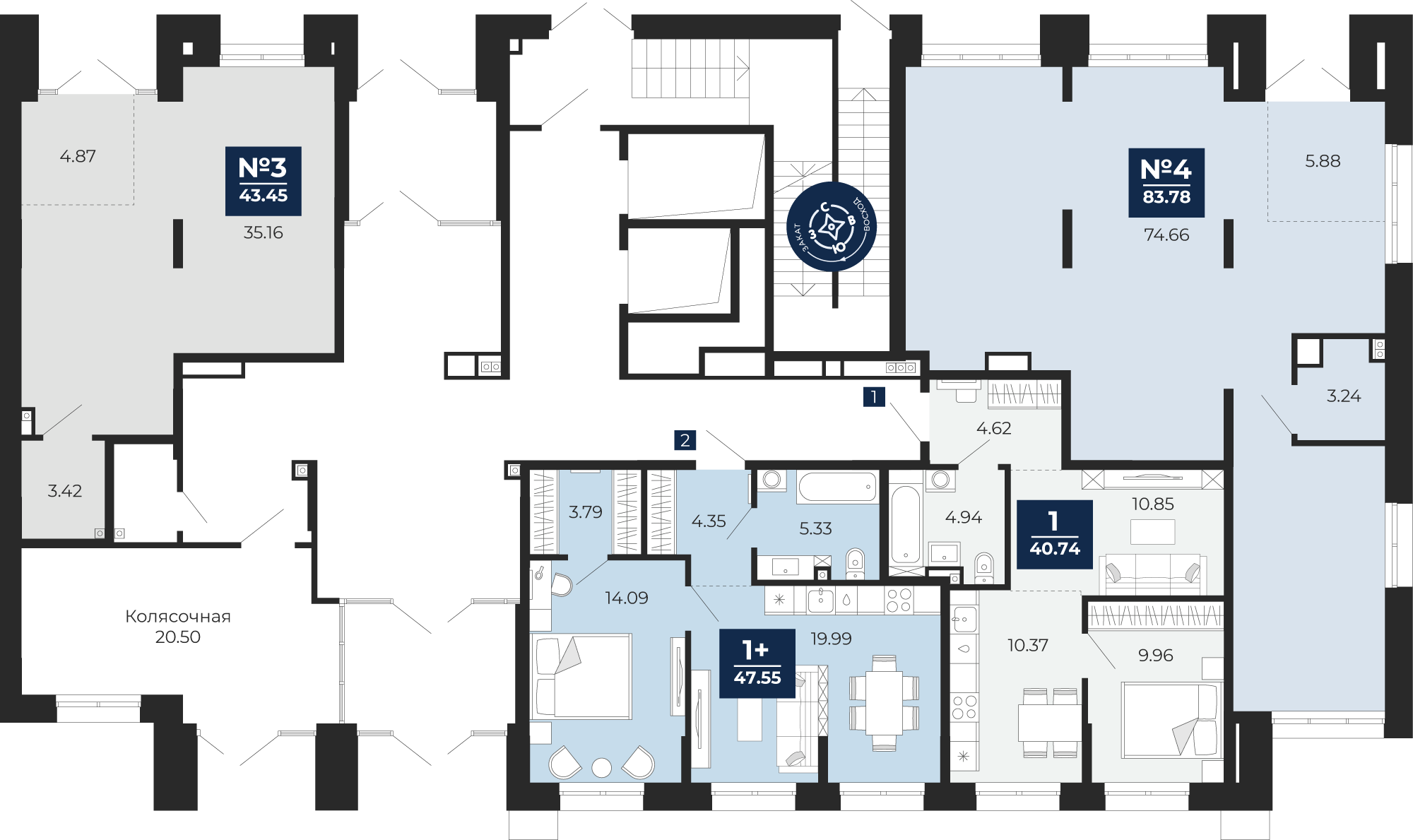 Квартира № 63, 1-комнатная, 40.74 кв. м, 1 этаж