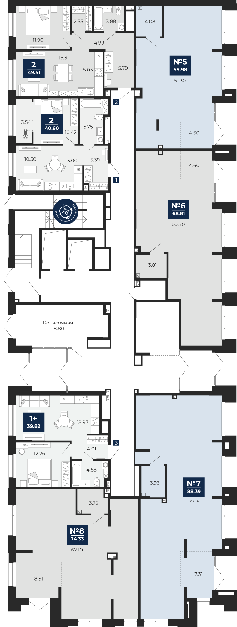 Квартира № 66, 2-комнатная, 40.6 кв. м, 1 этаж