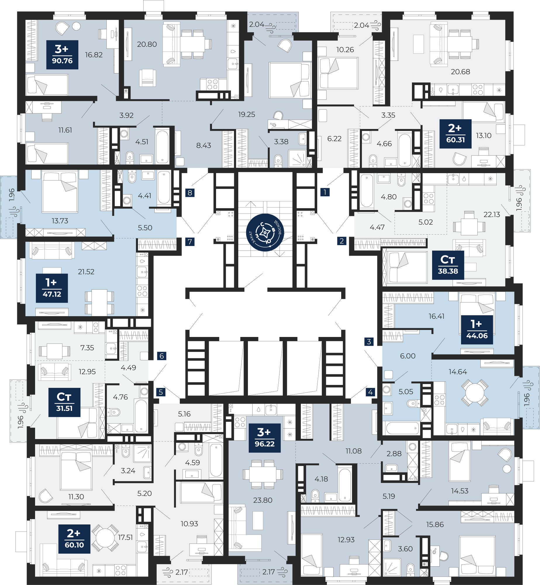 Квартира № 172, Студия, 31.51 кв. м, 23 этаж