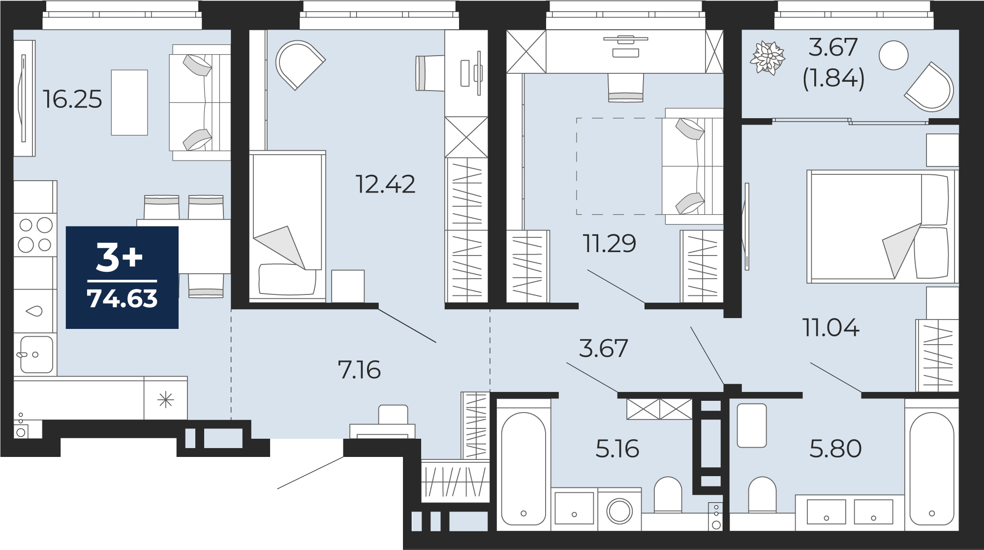 74.74 м2