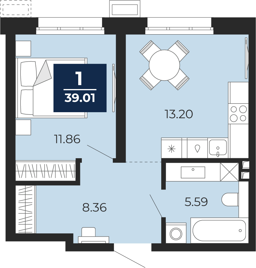 39.01 м2