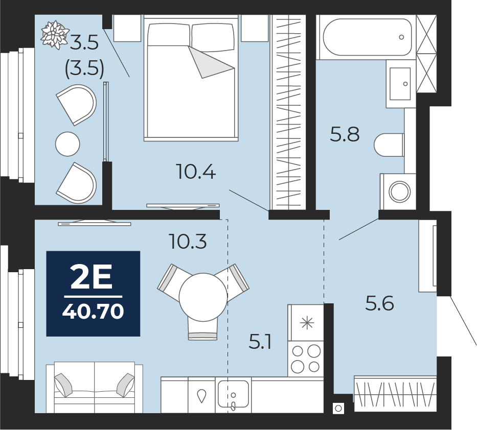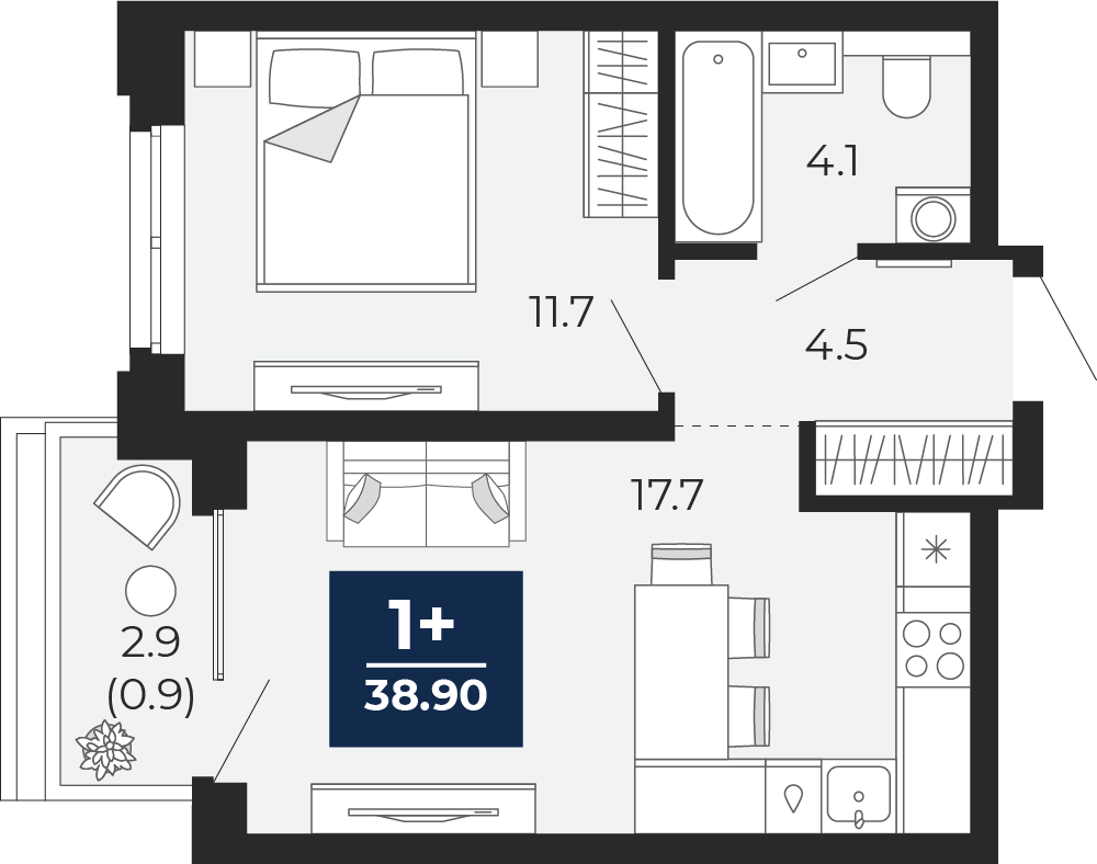 40.7 м2
