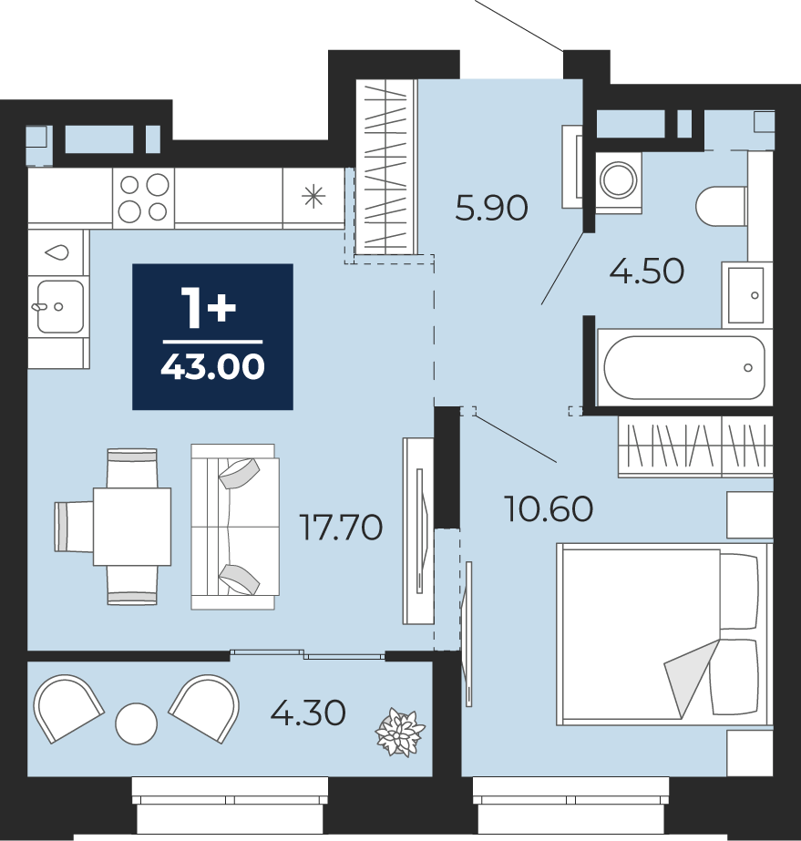 43 м2