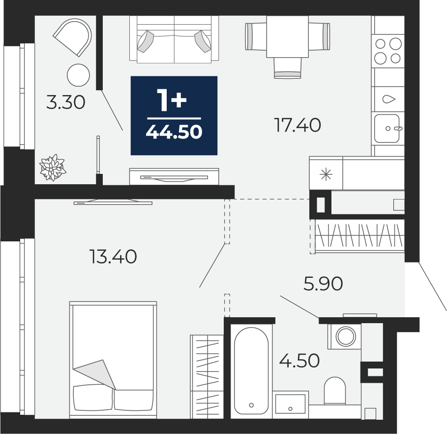 44.5 м2