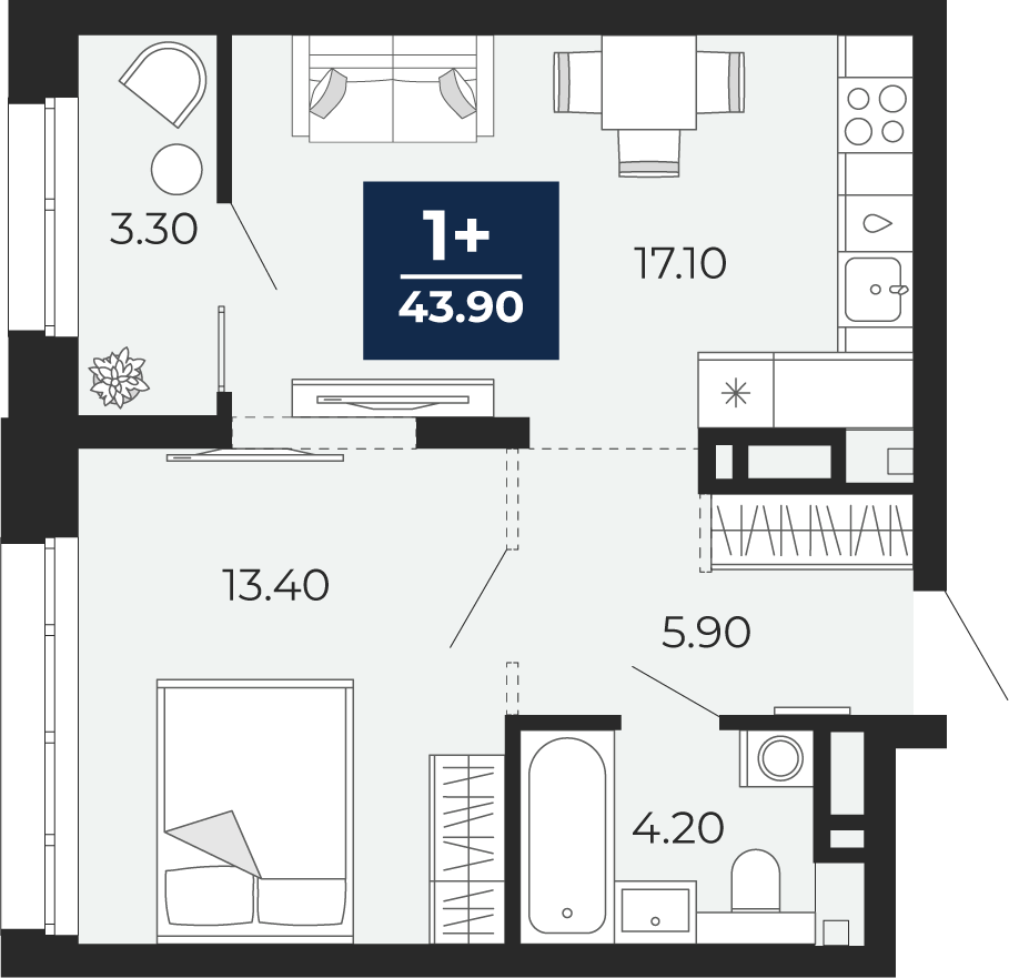 43.9 м2