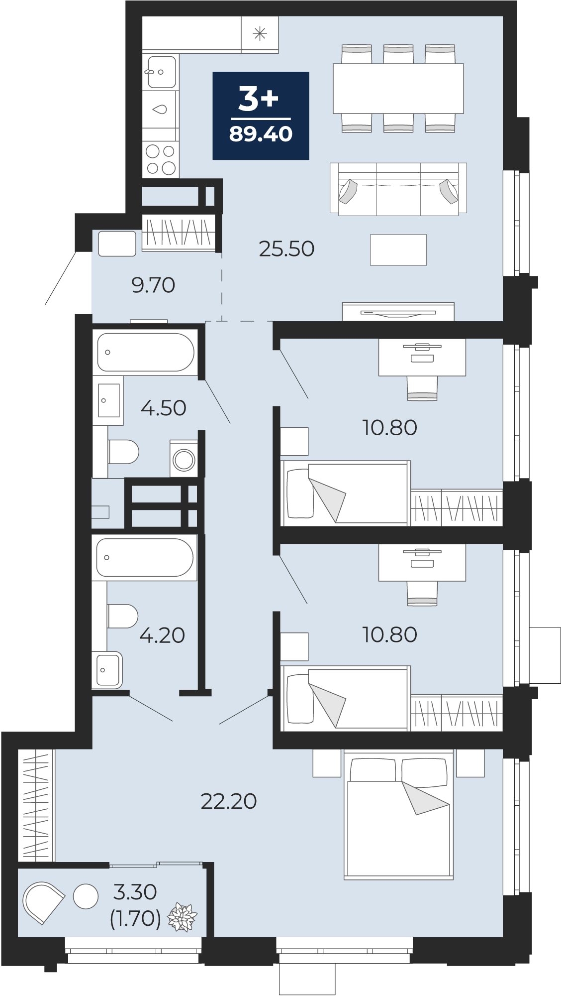 90.7 м2