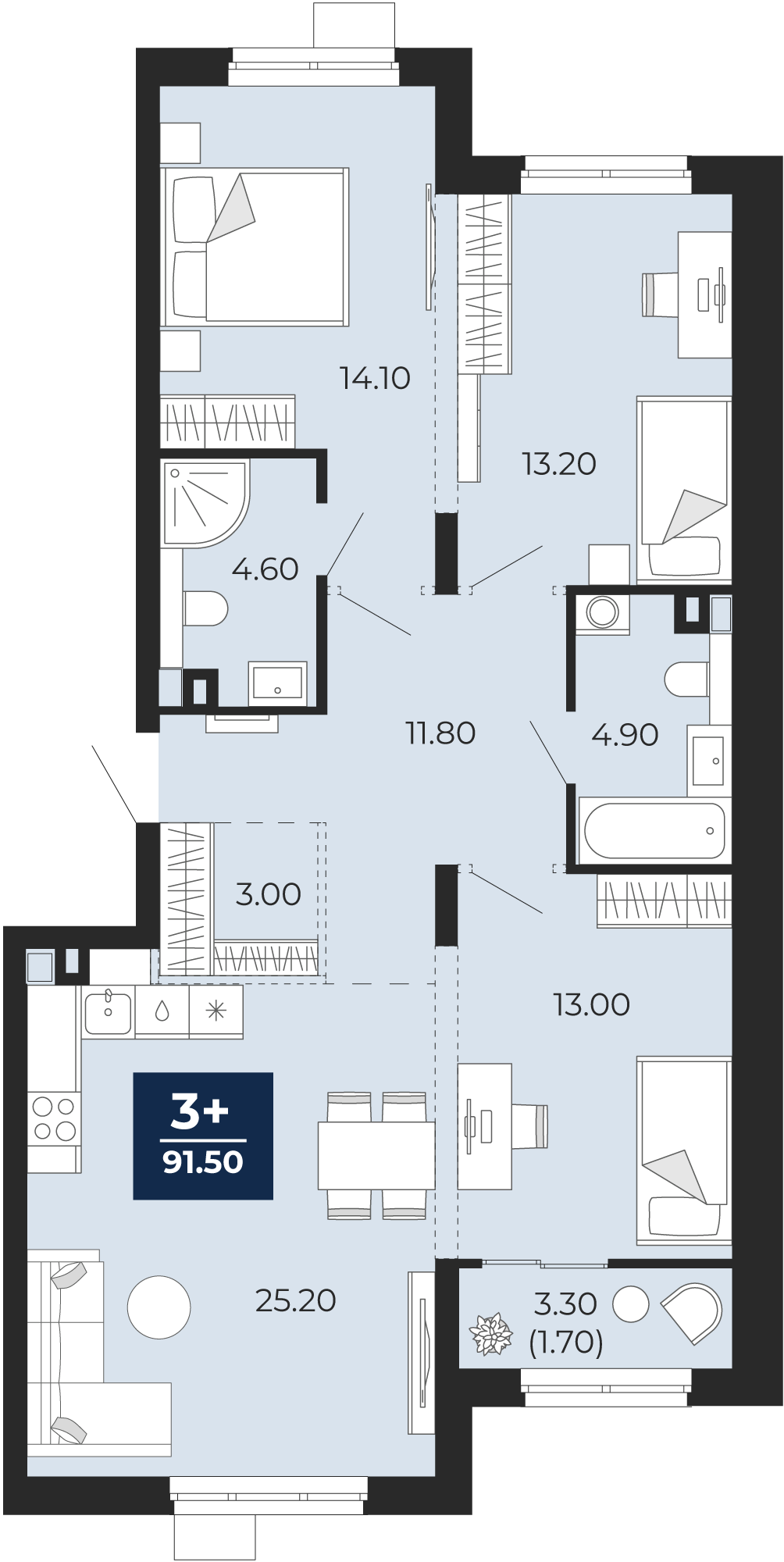 91 м2