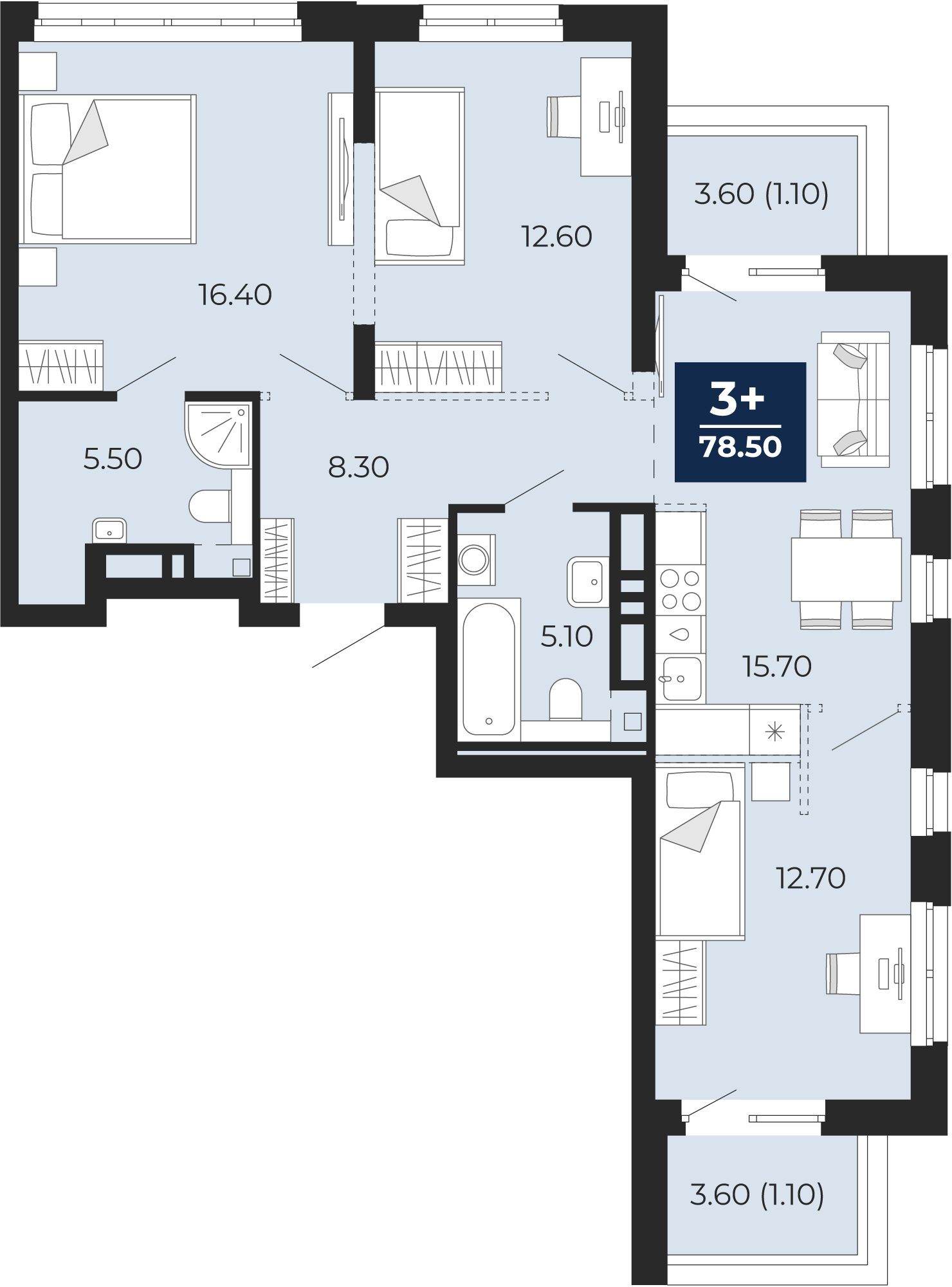 3-комнатная