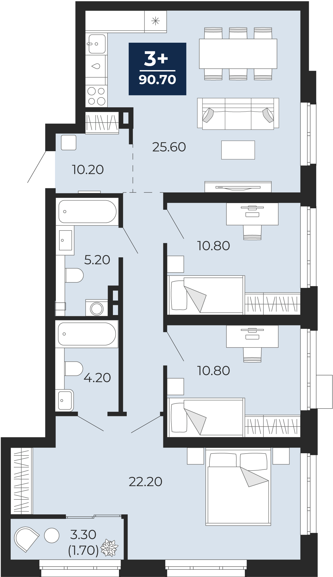 90.9 м2