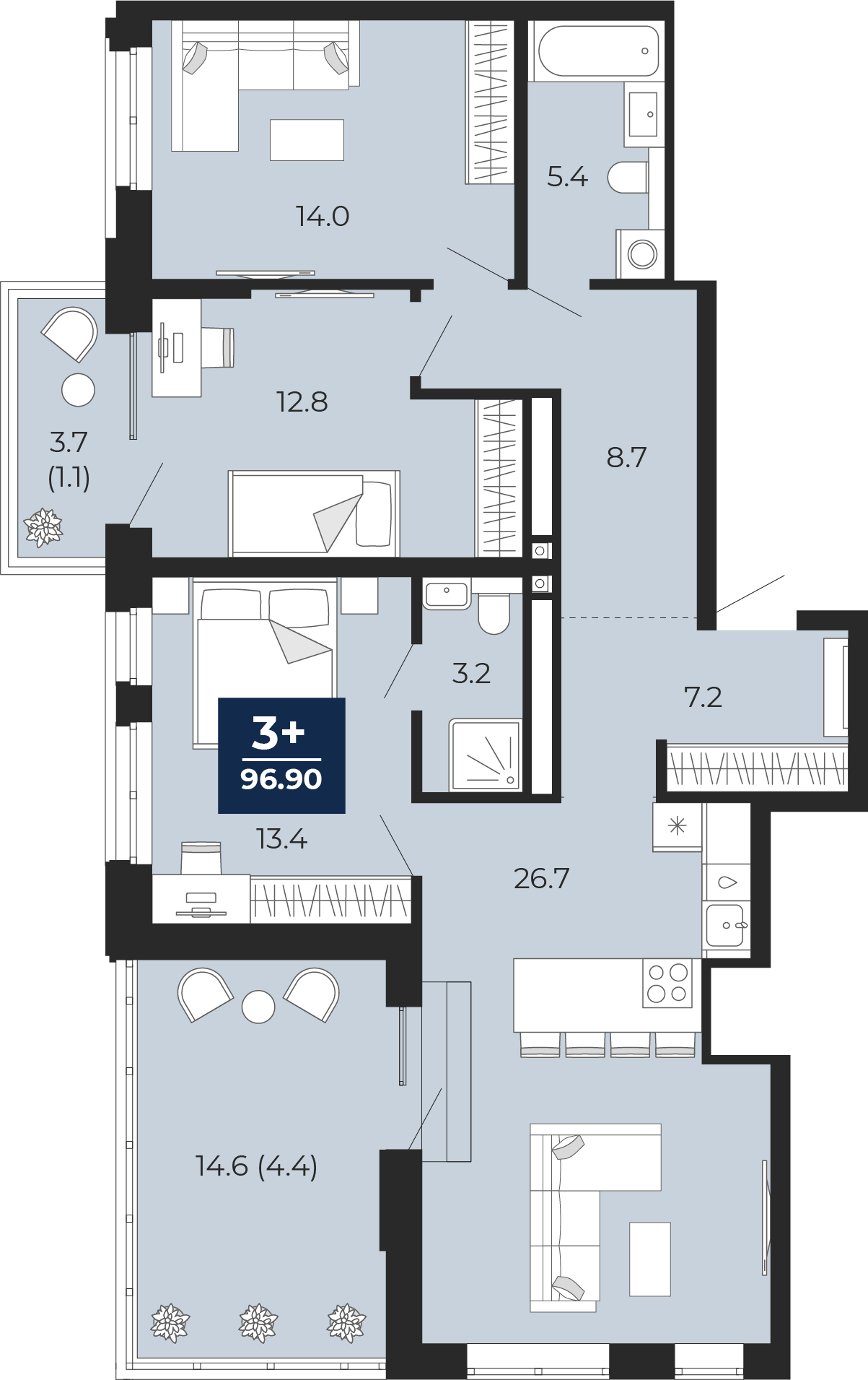96.9 м2