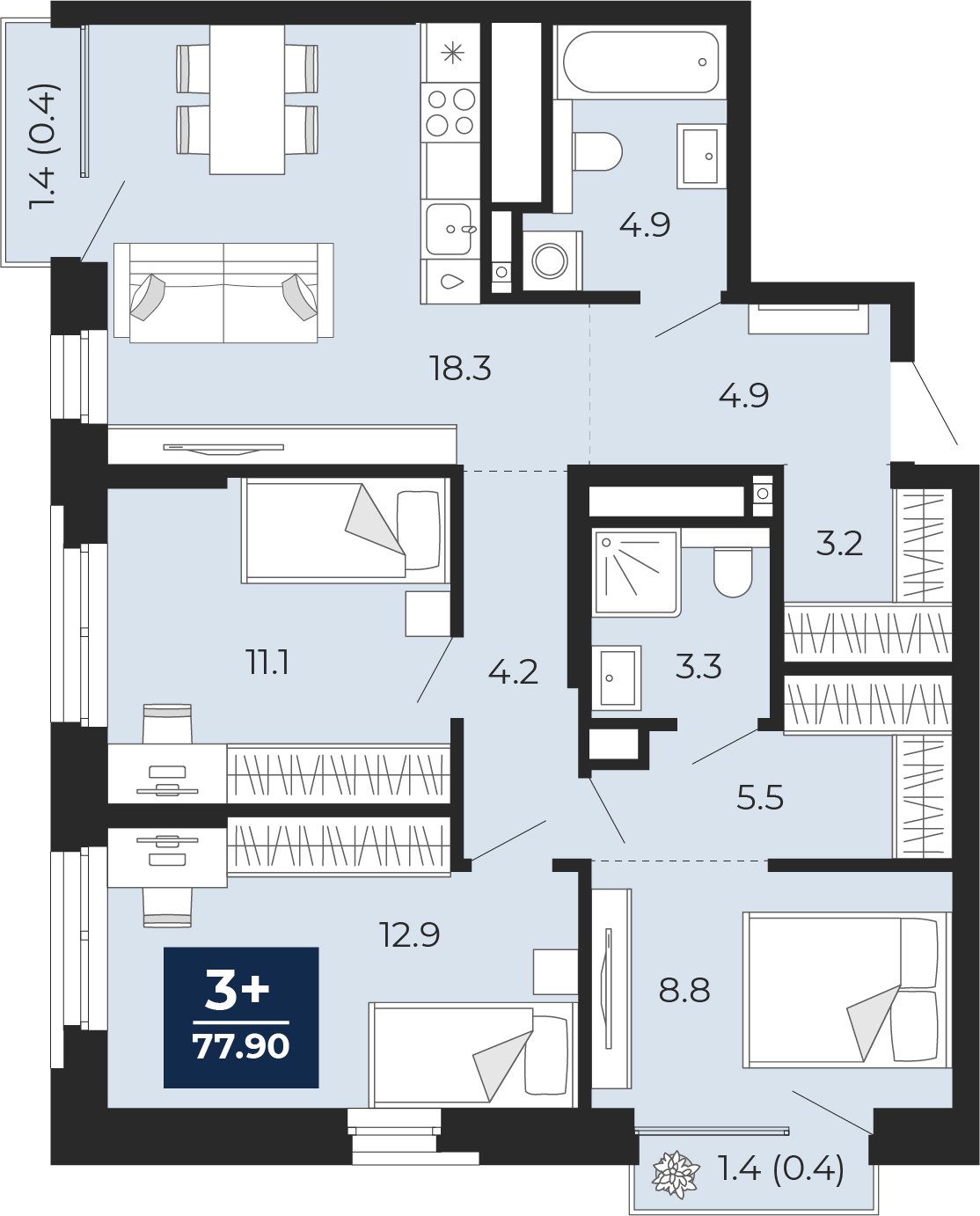 77.9 м2