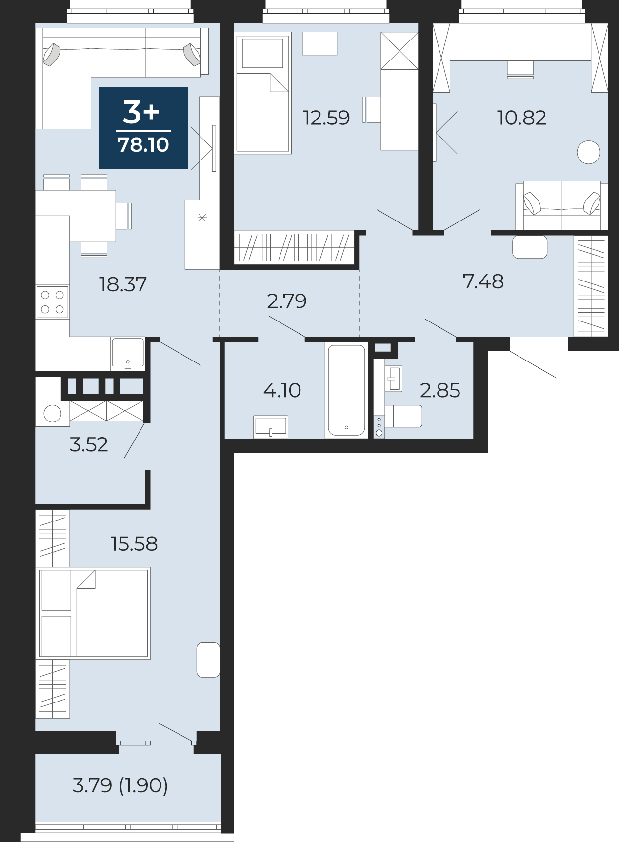 3-комнатная